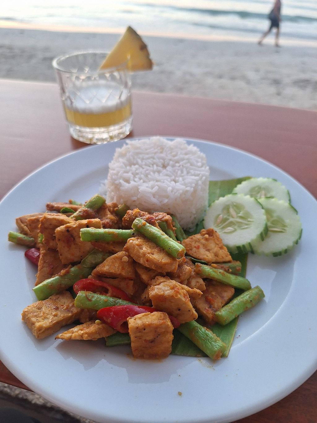 Dinner was super! Both, jackfruit massaman curry and stir fried tempeh were both very tasty.