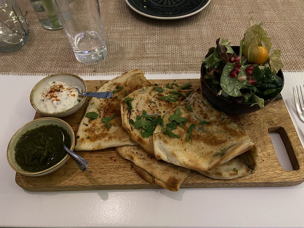 Very good bread, nice salad and the white sauce I really liked. 🫓