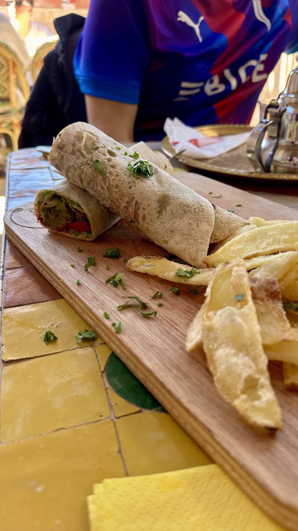 Came here for a quick lunch and was really impressed with the falafel wrap I had. It was some of the best falafel I’ve had in Marrakech - super crispy and moist. The veggies in the wrap were nice and fresh and the chips were also delicious. I’d come back here again!