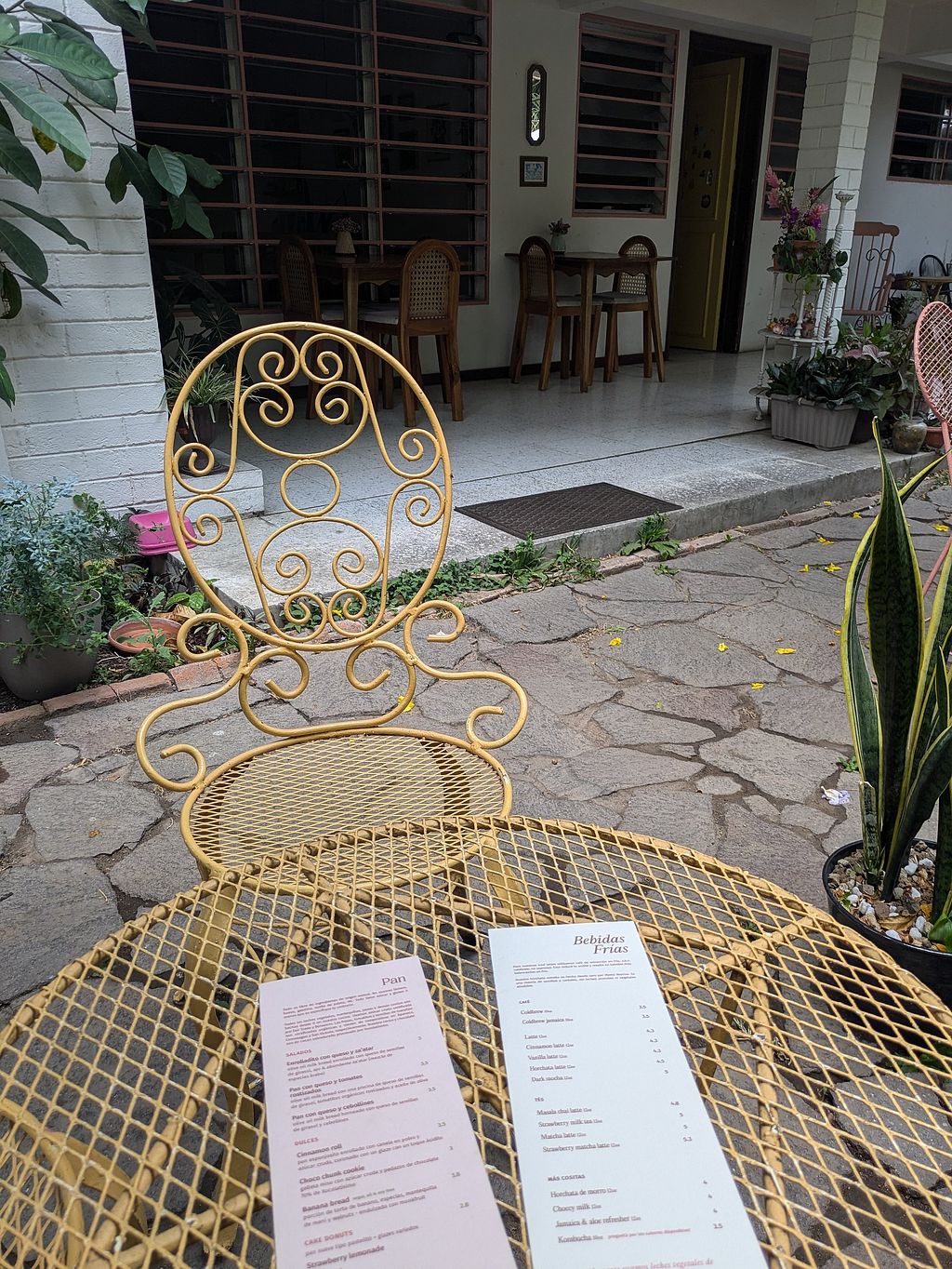 Cute outdoor seating area, delicious food, a ton of options, best coffee in El salvador, incredibly friendly staff, free WiFi. I can't recommend this place enough! I stayed all afternoon and then also got some stuff to go for the next day. As others have said, it is a bit hard to find: go into the gated drive way, it's the pink house in the back on the left.