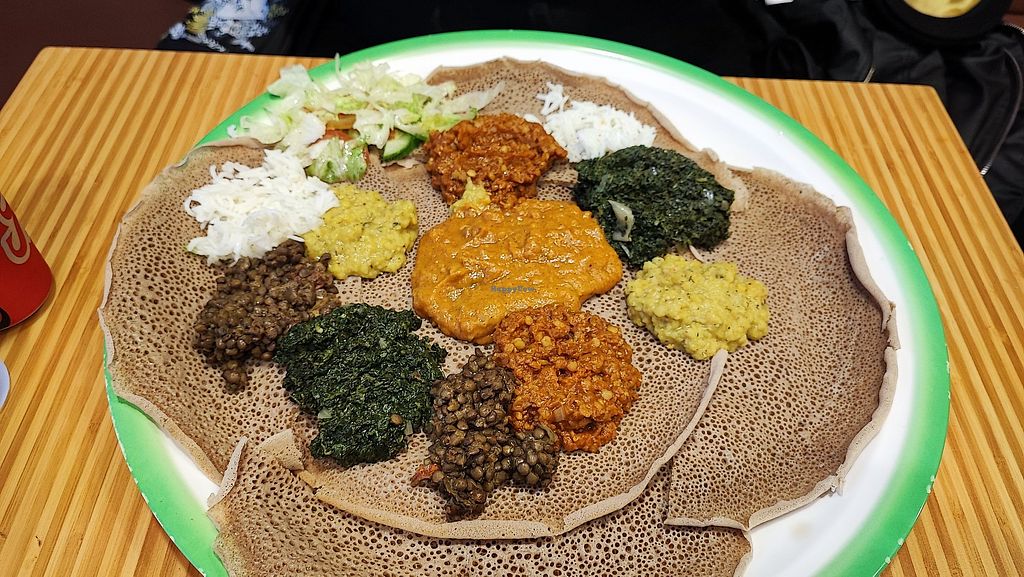 I got stranded at Alkmaar station around dinner time and saw this cosey cafe with clearly marked vegan options on their menu. I chose the Bebianetu, which is a combination of their vegan dishes with chick peas, spinach, lentils, a nice sauce, side salad and of course injera. The small portion was more than enough.