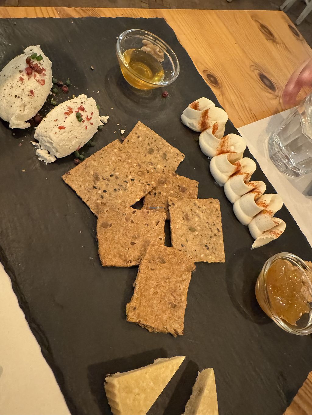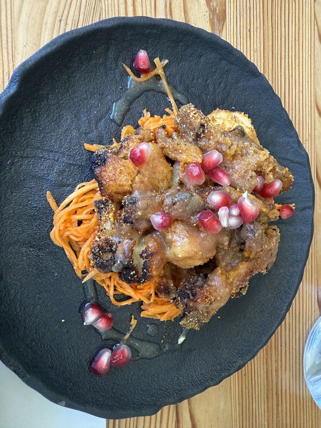 Tortelli filled with black cabbage and vegan mozzarella, crunchy seita…