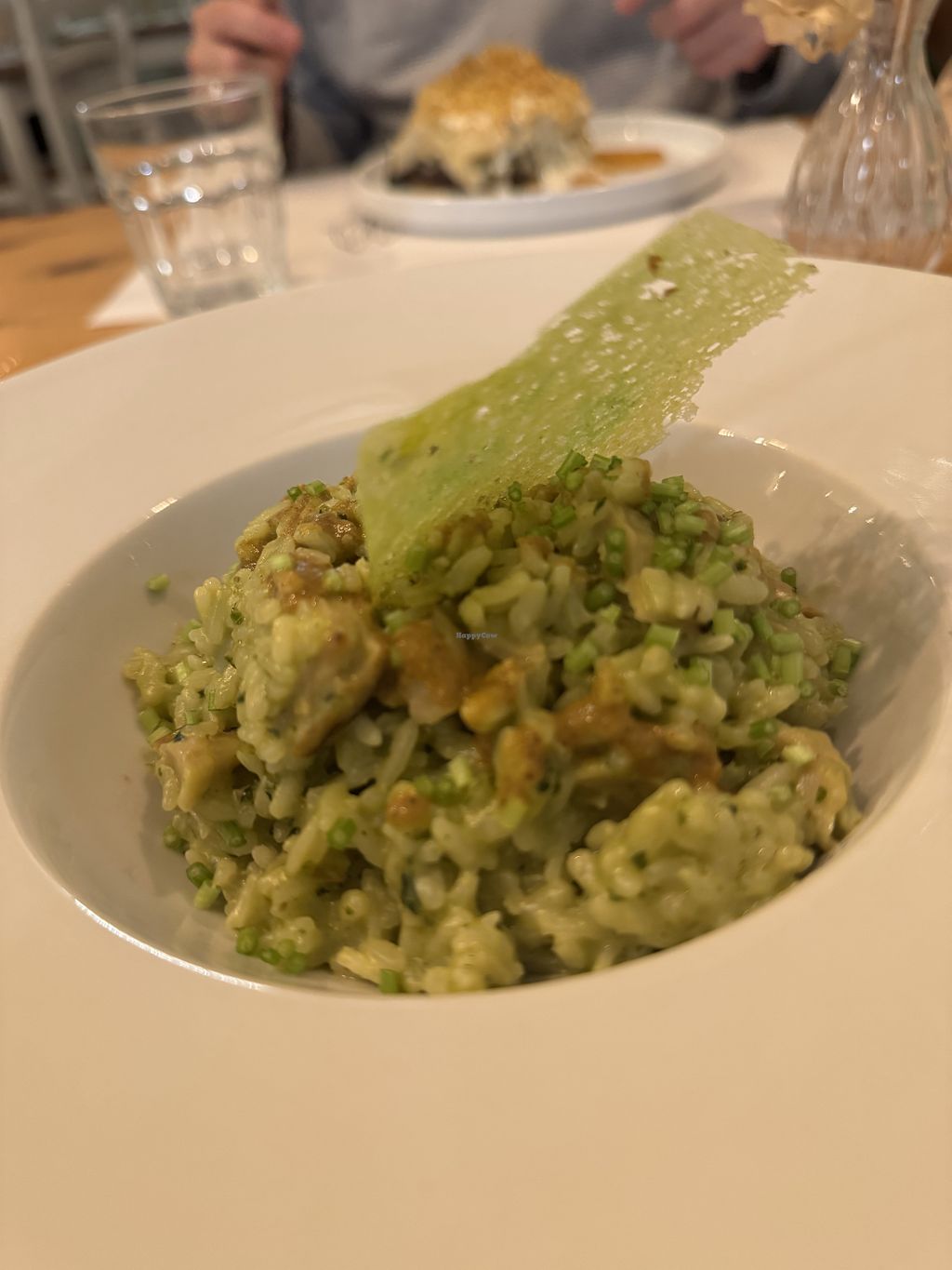 Lasagna with artichokes, mint besciamella, fried capers, lemon cream a…