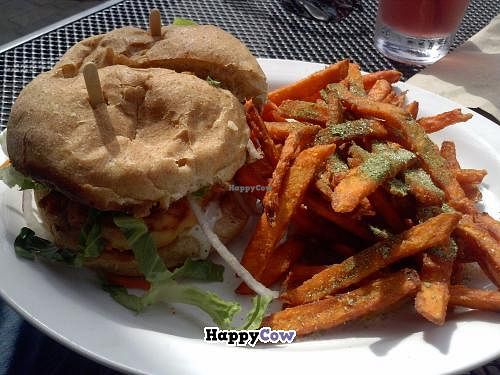 chicken ranch burger with sweet potato fries