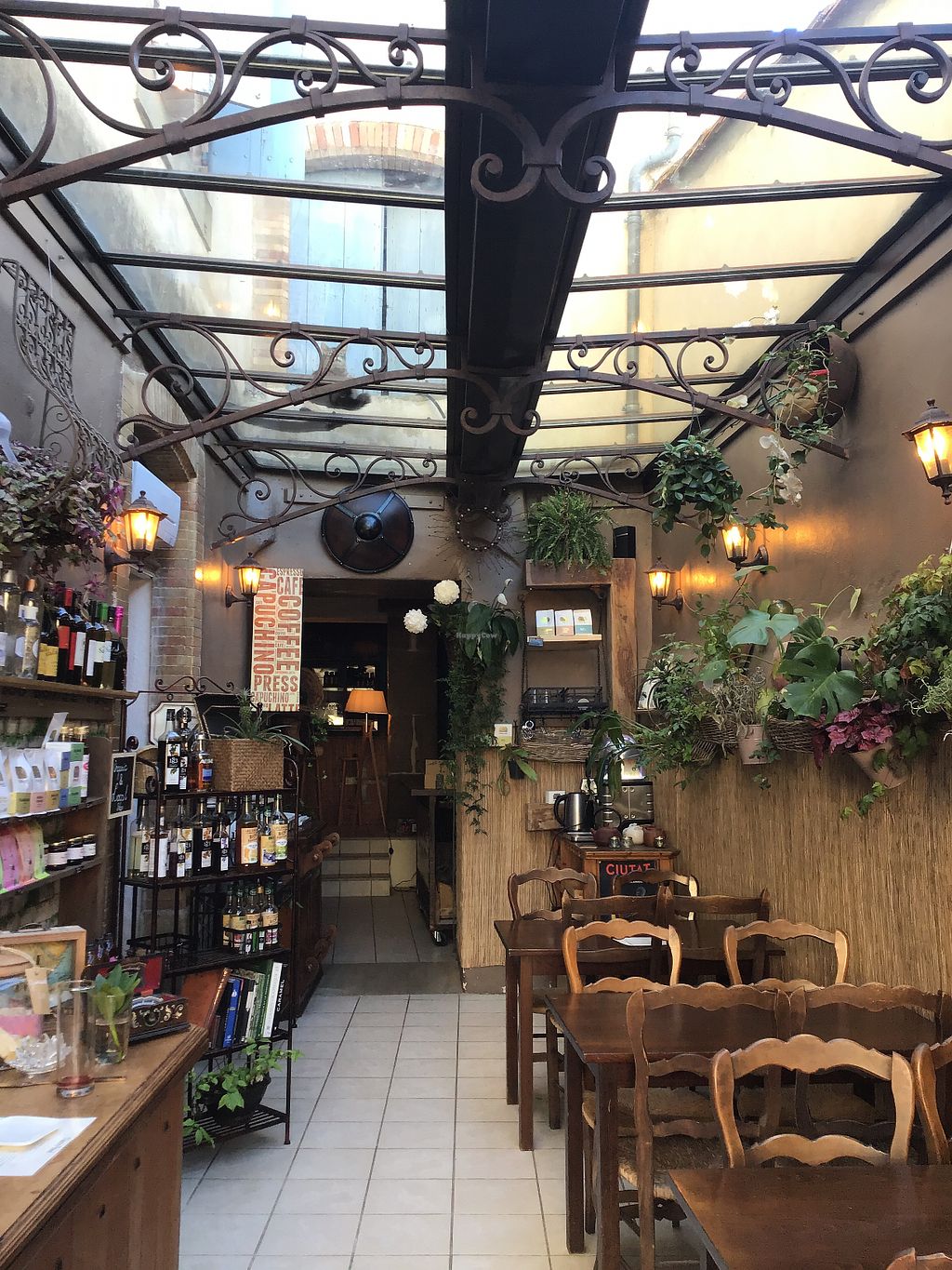 It's a nice little restaurant in Carcassonne which is not as overflowed as the other restaurants there. They serve vegan Flammkuchen - like a flat, crispy pizza - and also vegan dessert options (coconut yoghurt with fruits). The stuff was a bit overstrained when a lot of people came but they stayed friendly and that had no influence on the quality of our food. I would go there again.