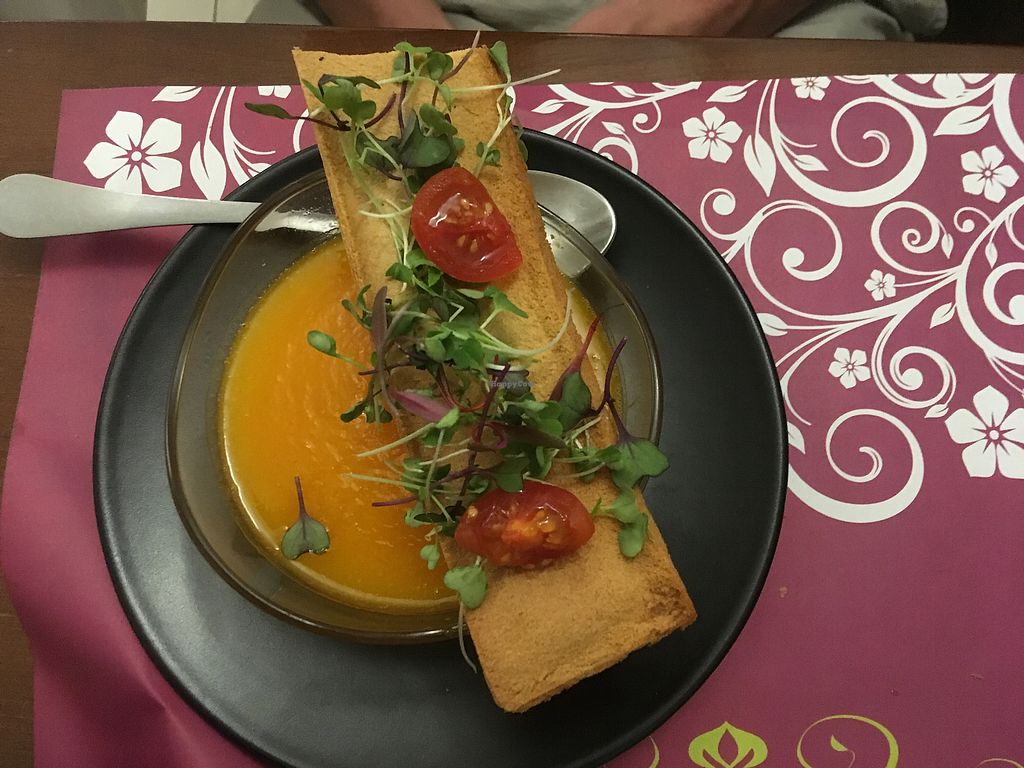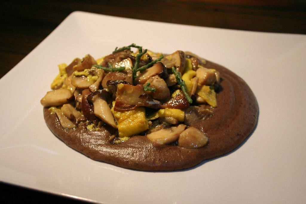 Revuelto de variedad de setas con tortilla de tofu con crema de patata…