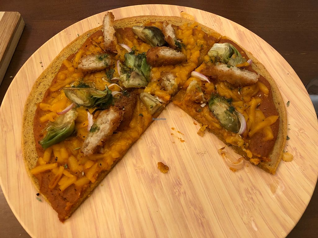 (No chicken, vegan bacon, mushrooms, red onion and vegan parmesan chee…