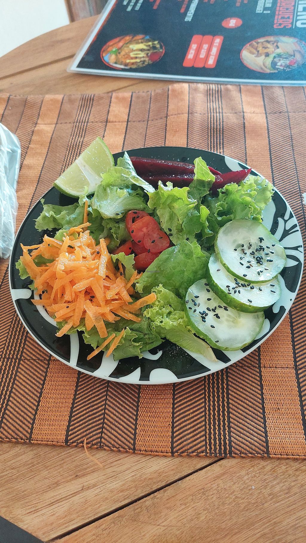 A comida estava deliciosa! Peguei o hambúrguer de grão de bico e meu amigo pegou uma sopa e um suco fresco. Os preços são muito razoáveis e o proprietário/chef é muito gentil. Saiba que parece que ela é a única que faz a comida e parecia que a maior parte do nosso pedido foi feito na hora, então estava bem fresco! A desvantagem foi que nossa comida demorou uma hora para chegar.