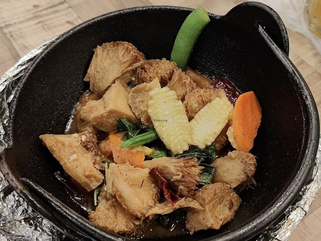 Makes vegetarian version of many oriental and western dishes. On the menu are 200+ items plus several daily specials. Large selection of hot and cold beverages, including smoothies. Relocated within this building, Apr 2018. Reported closed September 2024.