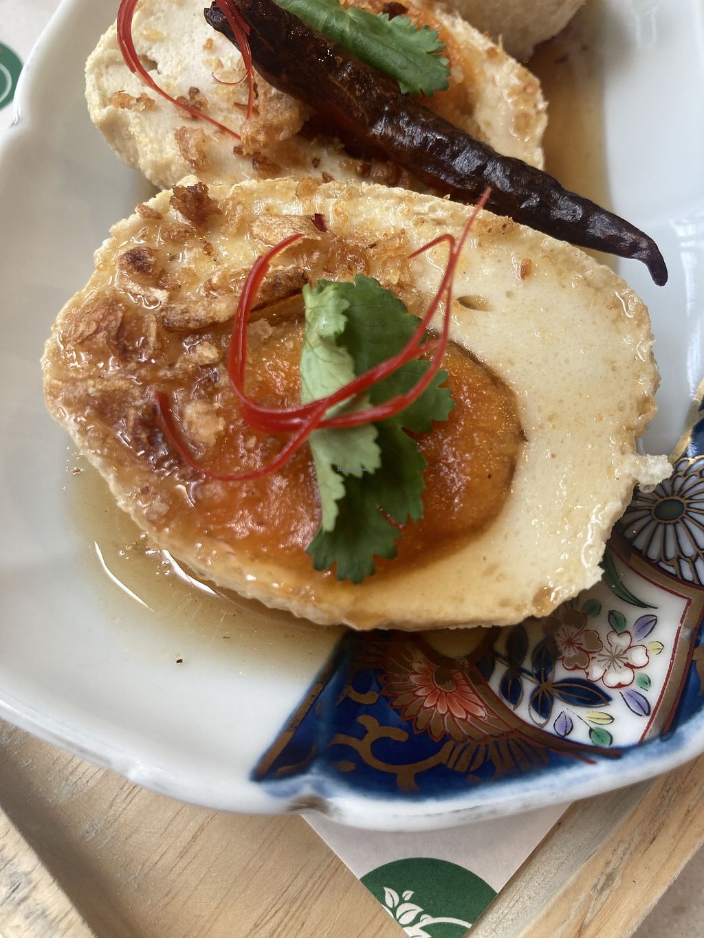 I also try the “son in law eggs”, hard boiled egg dish in Thai sauce (not spicy). It was outstanding and the best vegan boiled egg I ever had. I tried to ask what it was made of but the server didn’t know, whatever it is, it surely is worth trying. One of the restaurants I would definitely recommend to anyone visiting Bangkok.