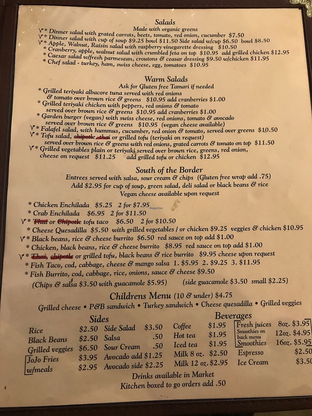 Tried to order reuben, no vegan cheese. Tried to order burger, no vegan burger. Tried thai dish, nope. Went for rice and bean burrito, they added cheese. Gave the burrito back and left. Waitress apologized and said they are in process of updating menu.