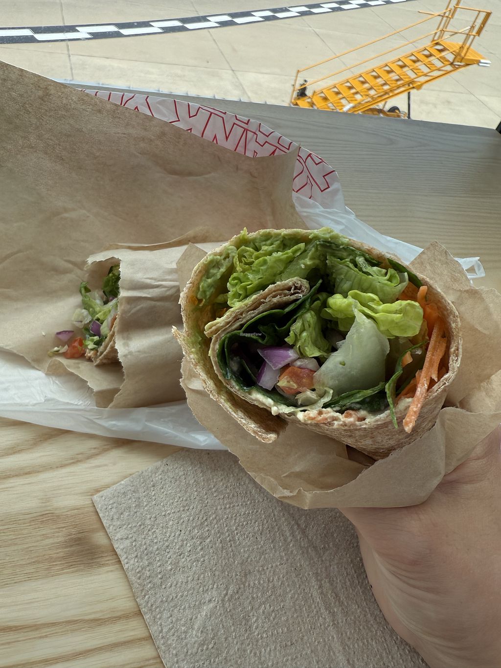 Got the avocado and hummus wrap. It was kind of a small portion for around $10, but it’ll do in a pinch and it’s healthier than French fries.
