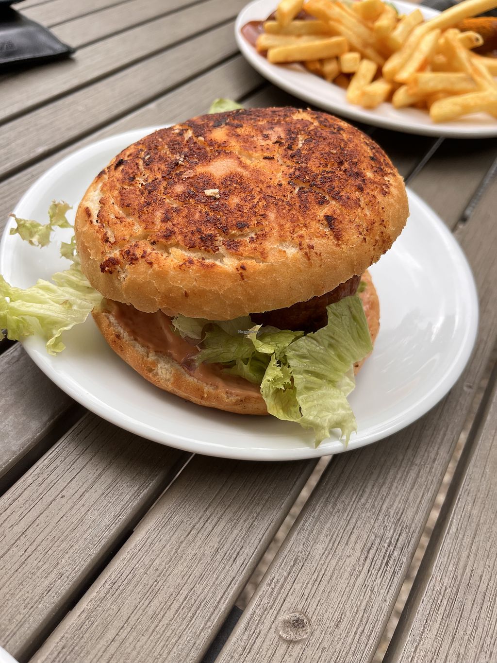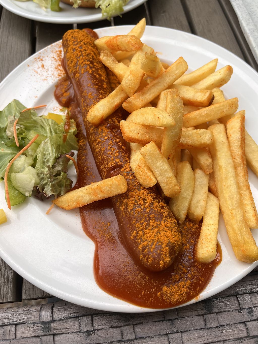 Read moreDie (vegane) Curry Wurst schmeckt ungefähr wie eine Brühwurst, die Pommes sind prima.