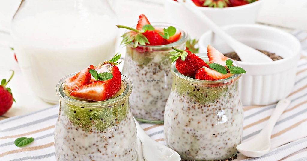 chia-vegan joghurt and strawbeery Kiwi Dessert