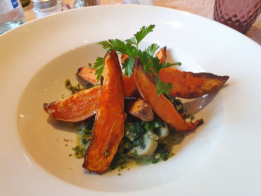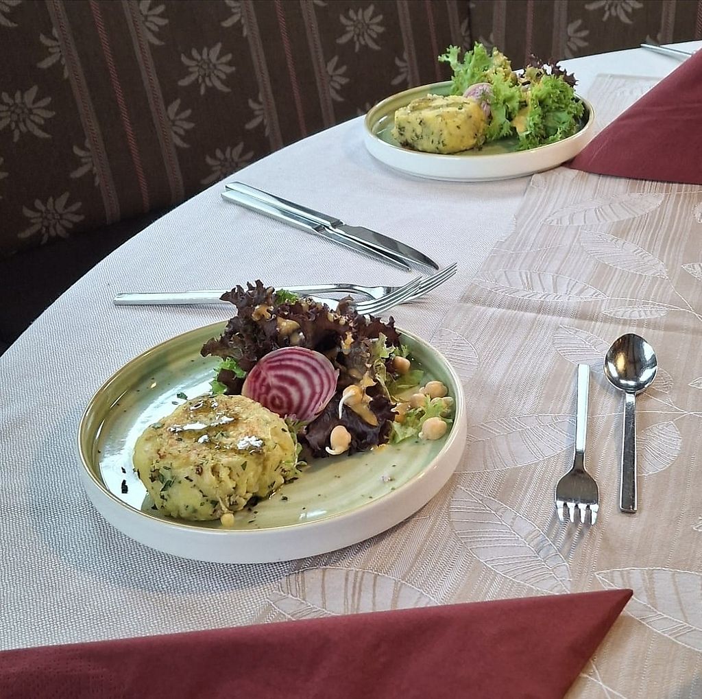 Vegane Vorspeise gekeimte Kichererbsen, Reis, Kartoffeln & Paprika