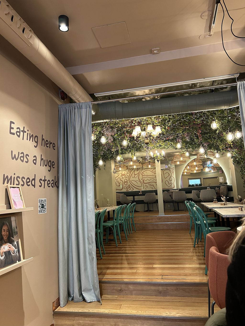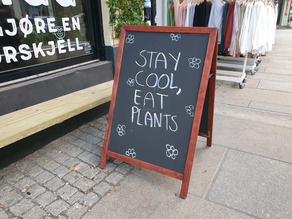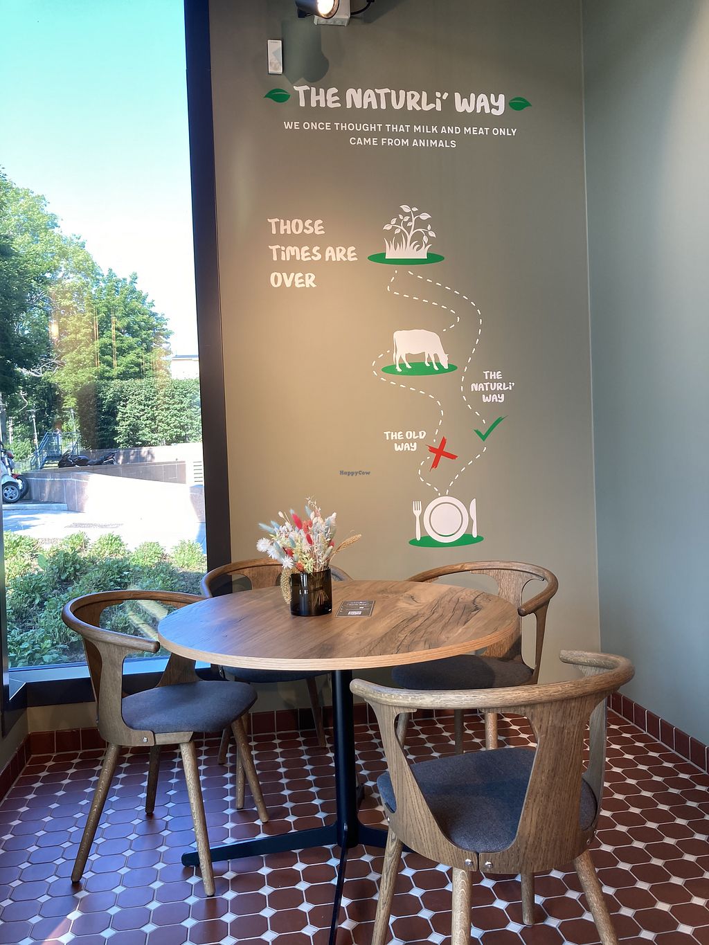 Table with pro-vegan wall decotation