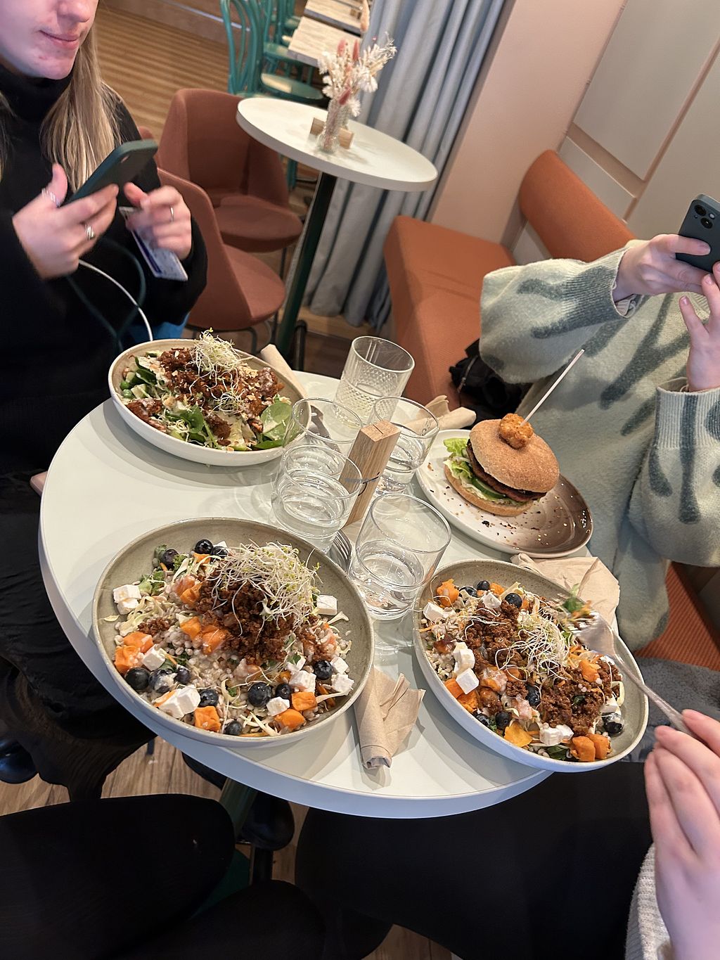 2 rainbow salads, 1 leafy green salad and a hoisin burger