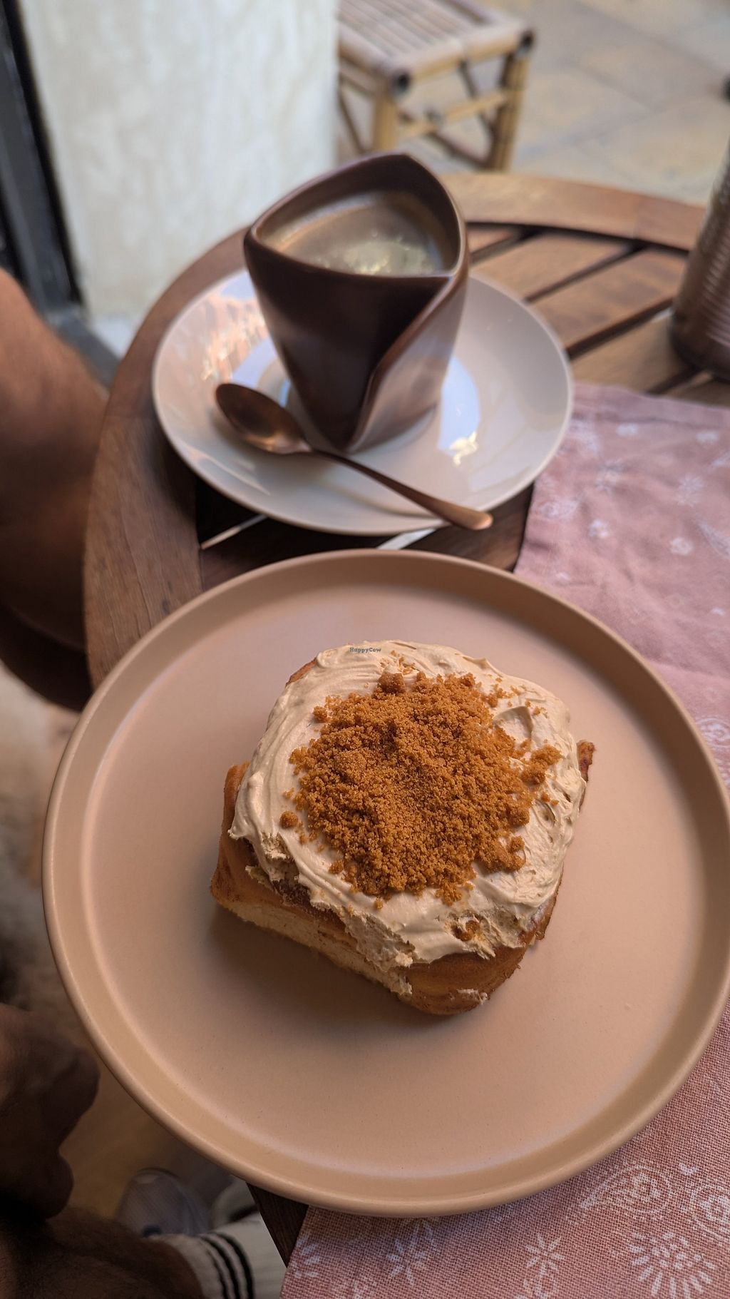 Me ha encantado esta cafetería, con todo vegano y una variedad interesante de dulces, además de algunos salados. Probamos los rollos de canela y las galletas de pistacho y qué bueno todo. El local es sencillo y agradable. El personal, muy amable, han abierto hace poco y se nota mucha ilusión. Qué bien, porque hay pocos sitios veganos por la zona. ☕️🌱