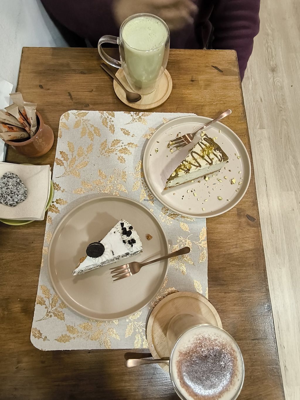 I've had Natury on my radar for quite a long time, and today I finally had the chance to try it out. We ordered the pistachio cheesecake, the lotus cinnamon roll, and a matcha latte. The food was amazing — ten out of ten!