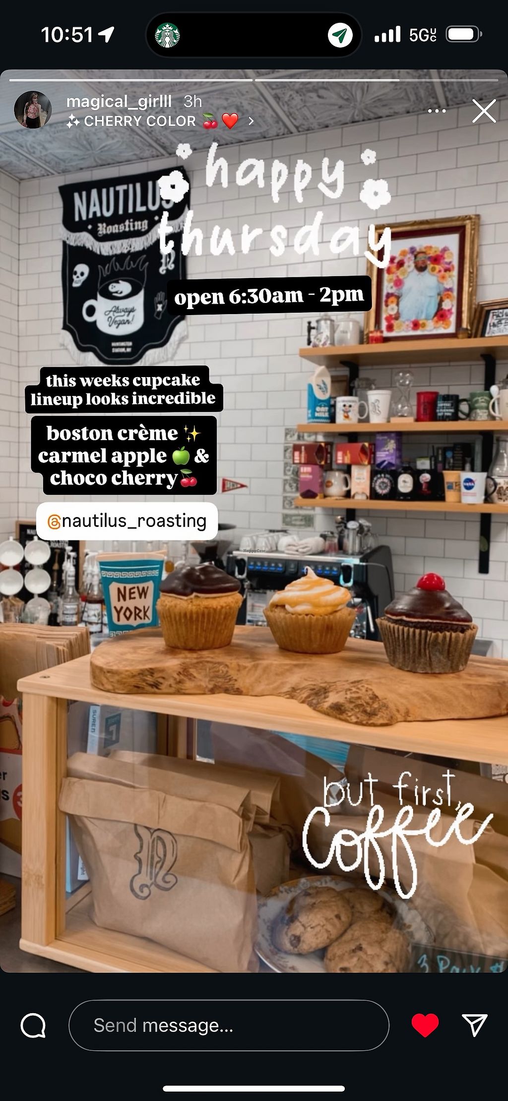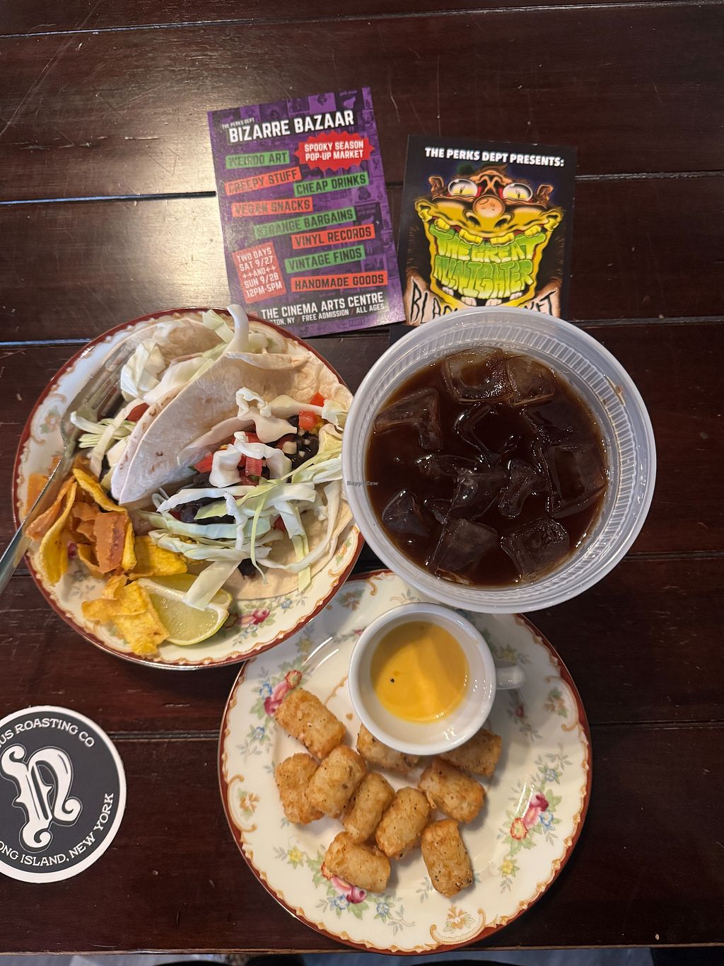 The store is open and has coffee , iced tea and baked goods ! All vegan and all delicious ! Great staff and amazing vibe