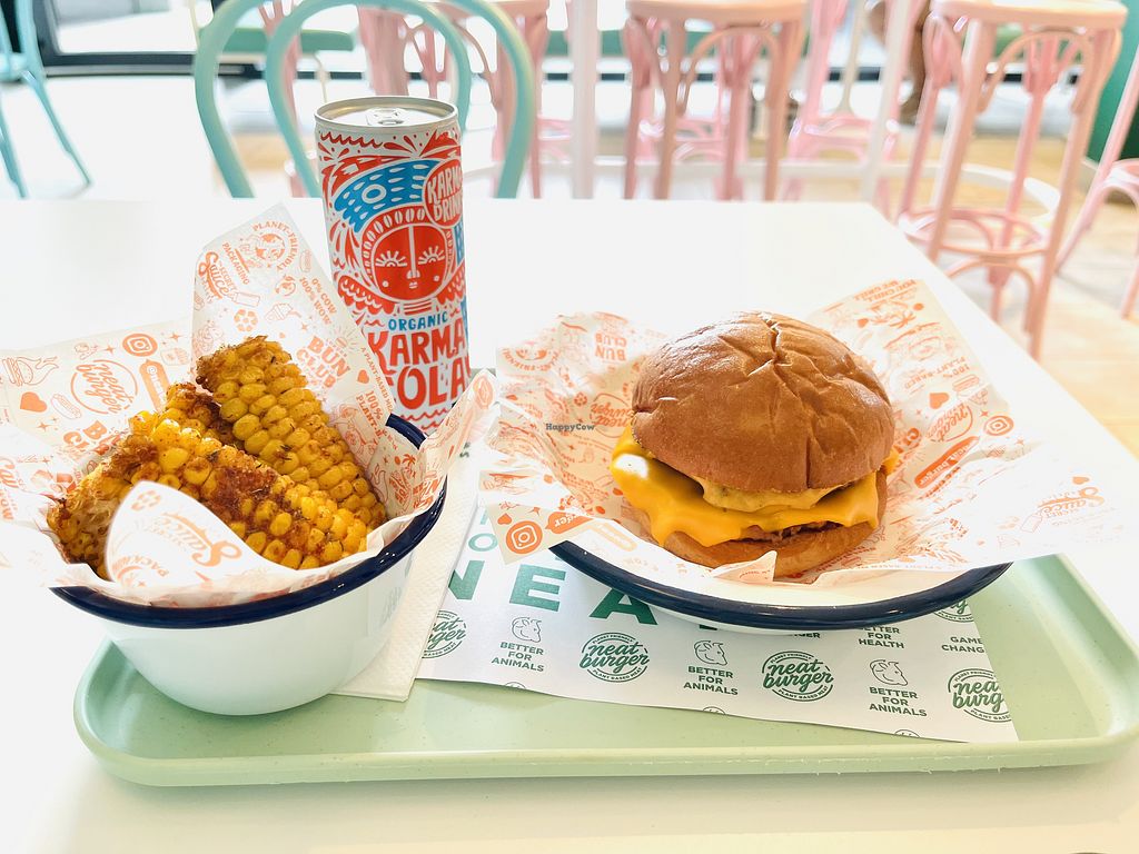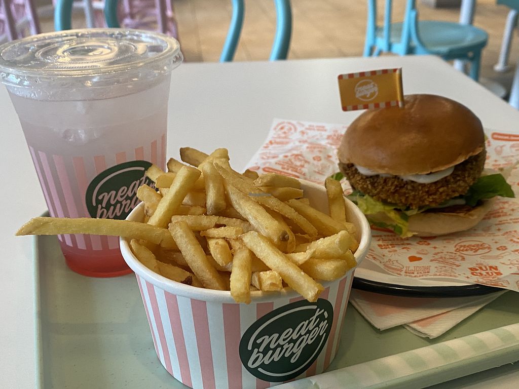Neat Burger Bishopsgate appears to be the biggest Neat Burger in London. It's modern and spacious. The food is excellent. It's basically a vegan McDonald's but with a nicer setting, less stress and more attentive staff.