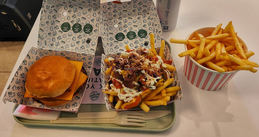 Loaded fries, Oreo shake, sparkling water