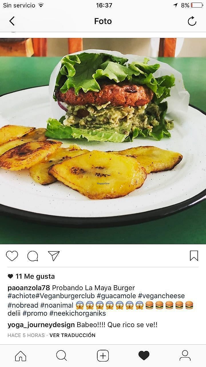 Juice bar and eatery. Serves a variety of foods including breakfast items, burgers, and snack dishes with Mexican elements like mayan corn tostada with pepita and mole. Beverage list includes coffee, infusions, kombucha, wine, juices and smoothies. Among the dessert options are vegan brownie and tropical ice cream. Everything is vegan except for honey in one dessert candy. Est. 2017 previously at Calle 60, no. 480. Reported closed, Nov 2919.