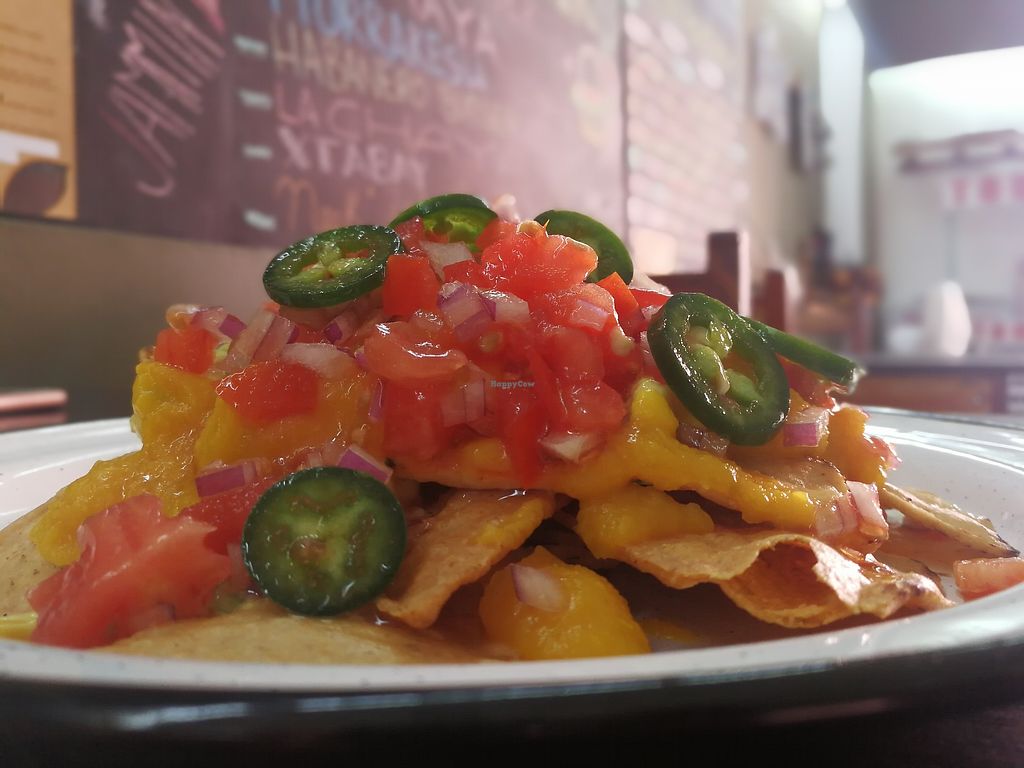 We really wanted to like this restaurant! Cool decor and really appealing all-vegan menu. But our experience was quite strange. First of all, they only had one burger and apparently couldn’t make more. So one of our party of 3 ordered it. And it never came! When the rest of our food came the server/cook apologized and said he could provide it in 50 minutes. As for the rest of our order, our only filling option were the nachos (75 pesos) so we ordered 2 plates. When they came (long wait as the server/chef had nothing prepped), they were delicious, and we shared them 3-ways. Our final surprise was when he charged us double the menu price for them. When asked about it he told us that he had put them on larger plates. A lot of confusion.