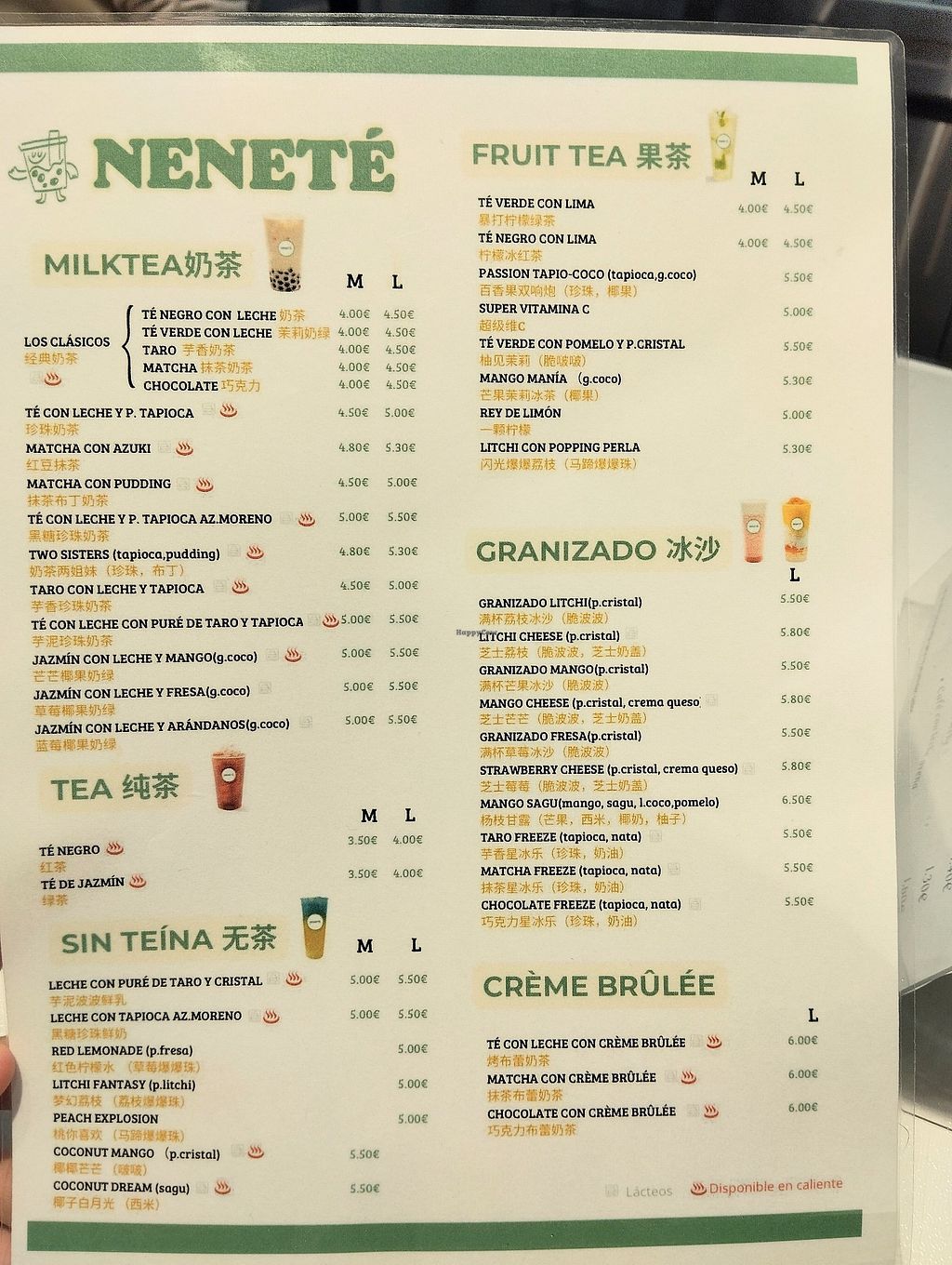 Read moreBubble tea muy rico, la mayor parte de la carta de bebidas se puede hacer vegana si pides leche de avena. Se pueden pedir calientes o frías. El personal es muy amable.