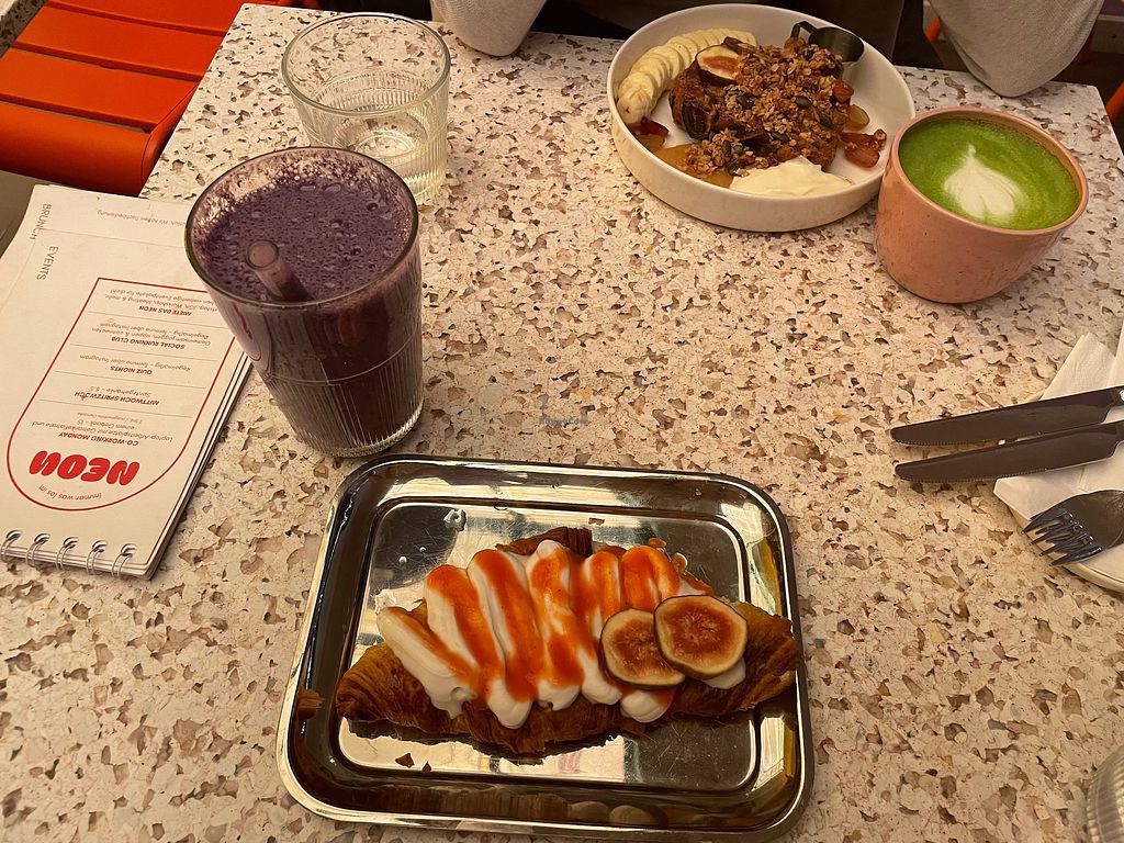 Great Matcha and all milk options. Cool cake counter and a few bready …