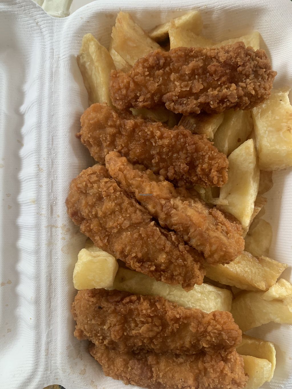 Vegan sausages with batter and fries - Neptune, Seahouses
