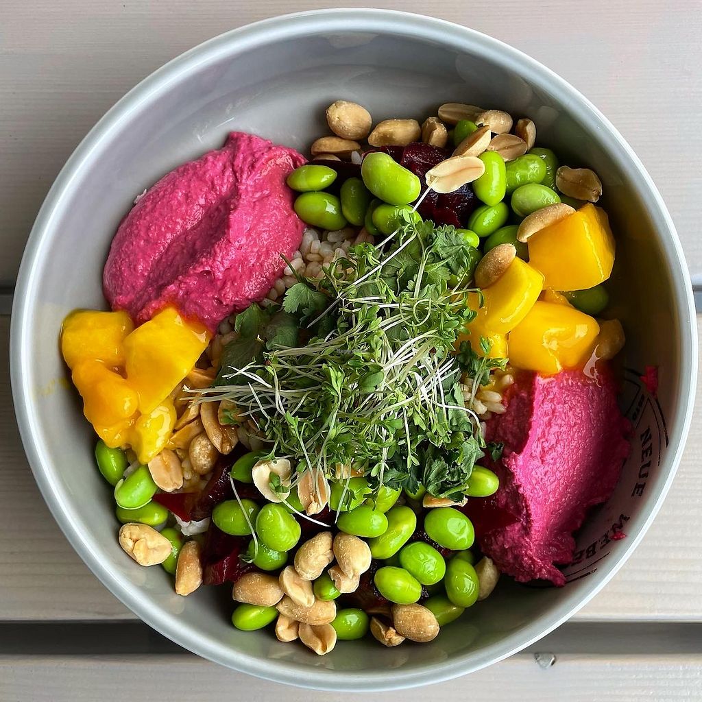 Serves meat, vegan options available. Co-working cafe offering a range of vegan-friendly bowls, sandwiches, soups and beverages. Open Mon 08:00-17:30, Tue-Fri 08:00-18:00, Sat 08:00-16:00. Closed Sun.