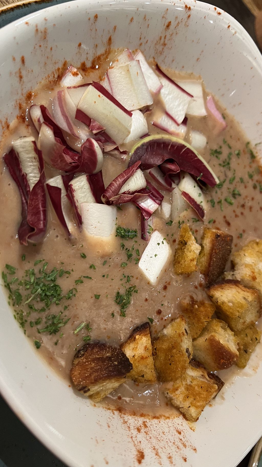Read moreI had a potato and leek soup and it was so delicious and warm on a cool, windy day. I also had the vegan aperol spritz (summer edition).