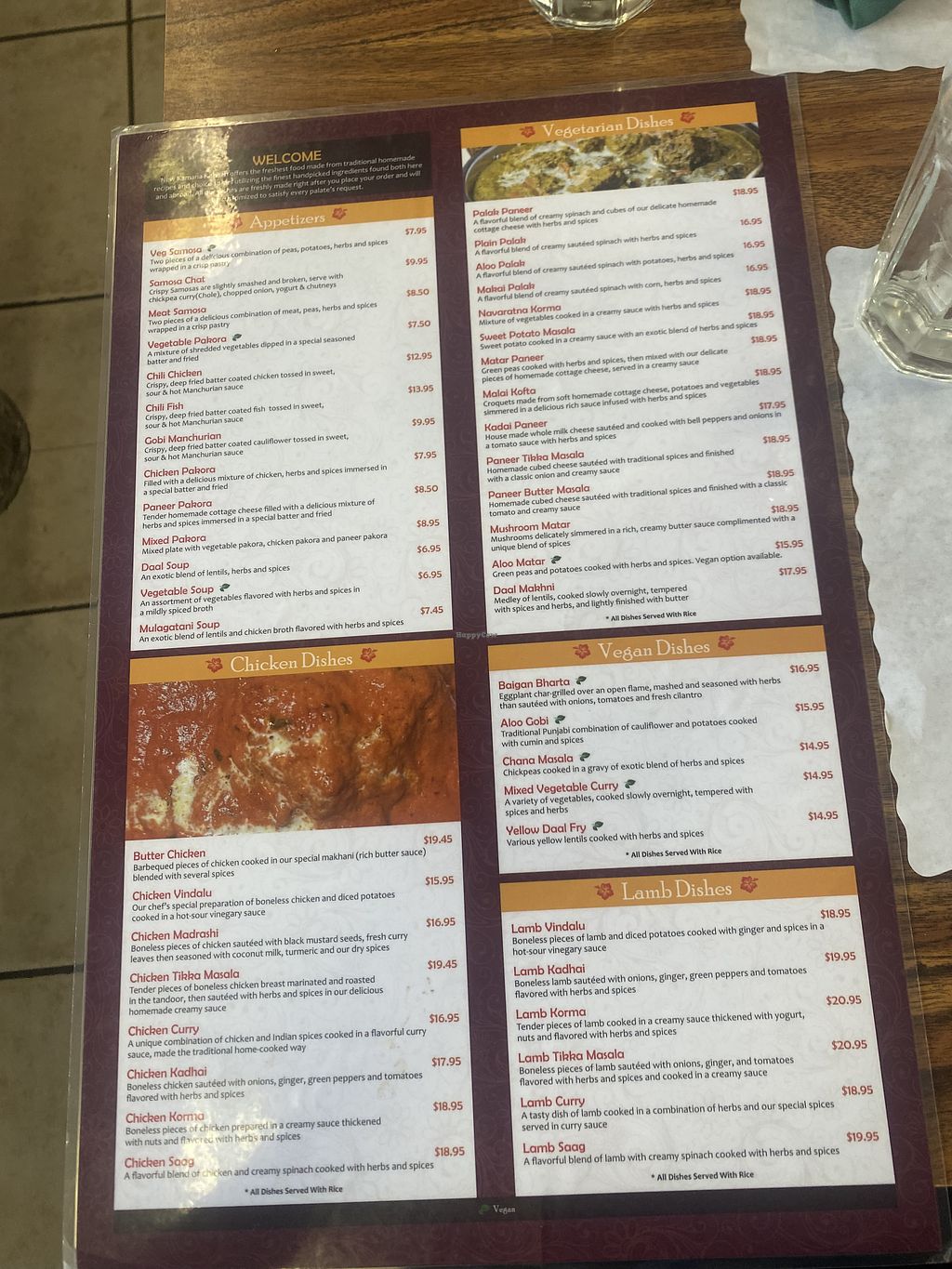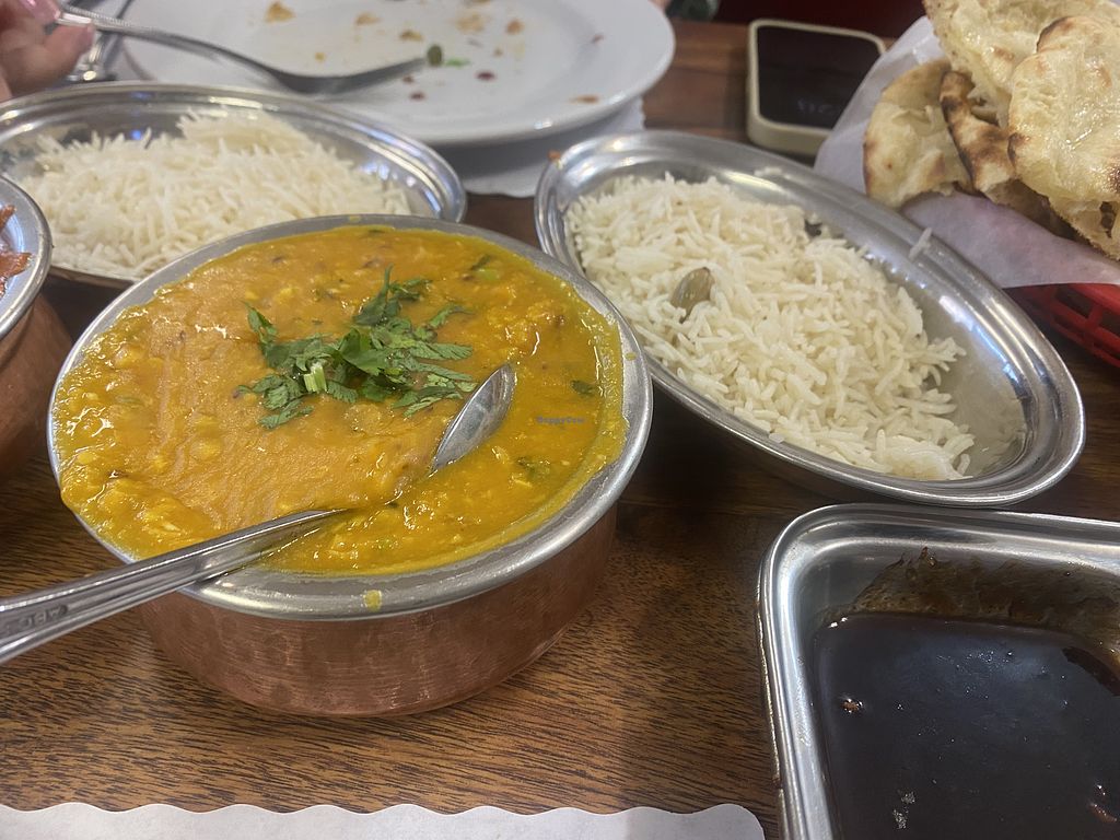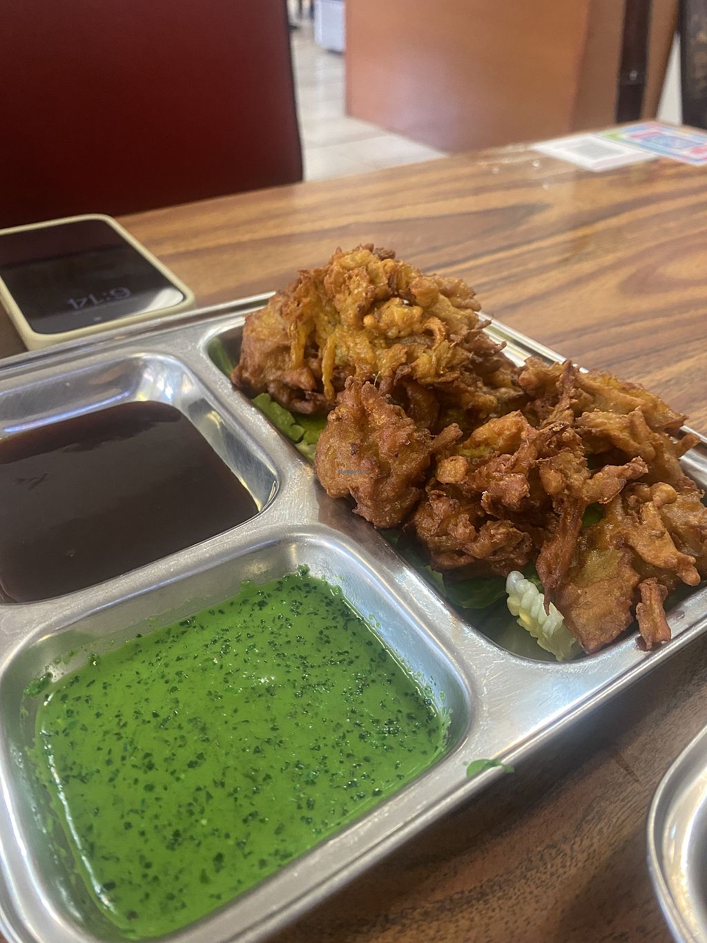 Prett good indian food, cant complain. Vegan section and lables on the menu. The servers were kind. Oarking is available nearby. I got the yellow daal, the pakora, and the samosa. My favorite was the pakoraz the dal could use some potato to be more hearty. Worth a shot, i think its pretty fair, could use more quantity. 3🤙