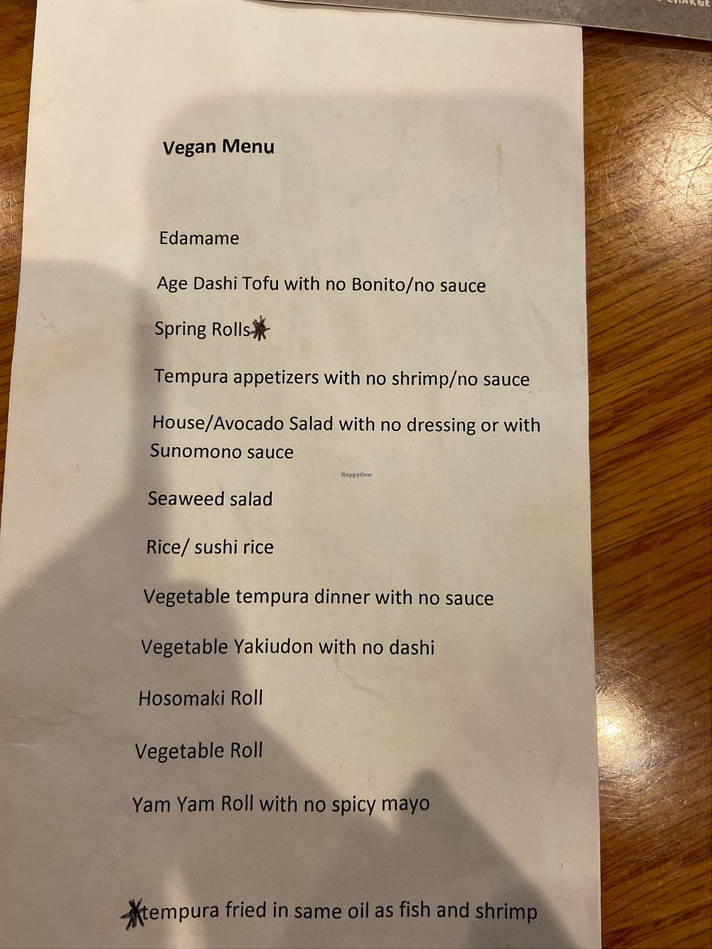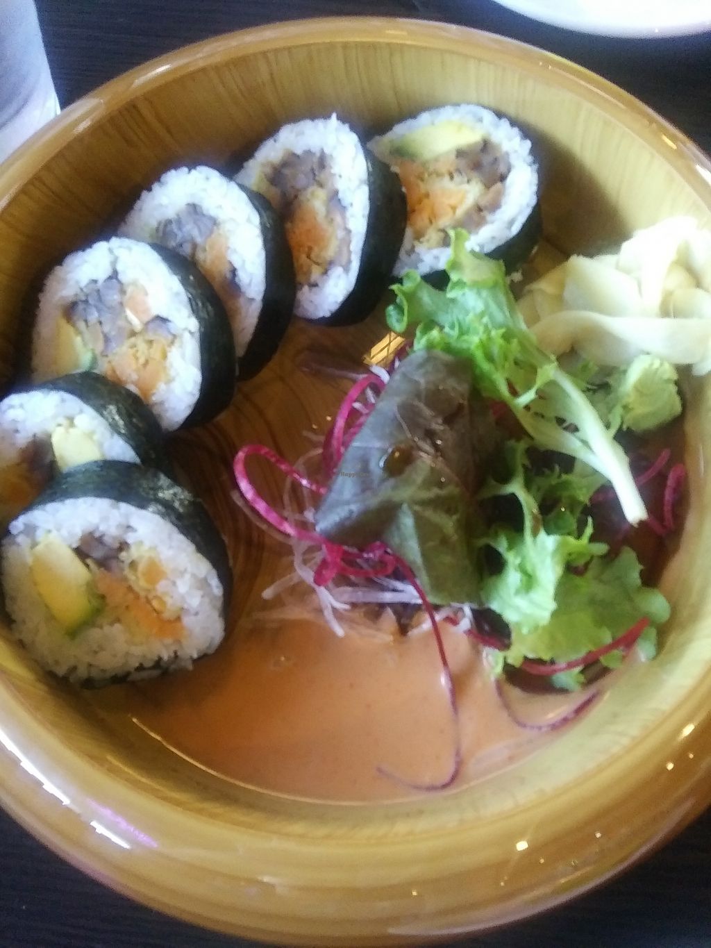 Serves meat, vegan options available. Sushi and Asian restaurant offering many vegan dishes. Ask for the vegan menu which lists everything that is already or can easily be made vegan. Can also sometimes make a special vegan roll. Open Mon-Fri 11:30am-2:30pm, Mon-Thu 5:00pm-9:30pm, Fri 5:00pm-10:00pm, Sat 5:00pm-9:30pm, Sun 5:00pm-9:00pm.