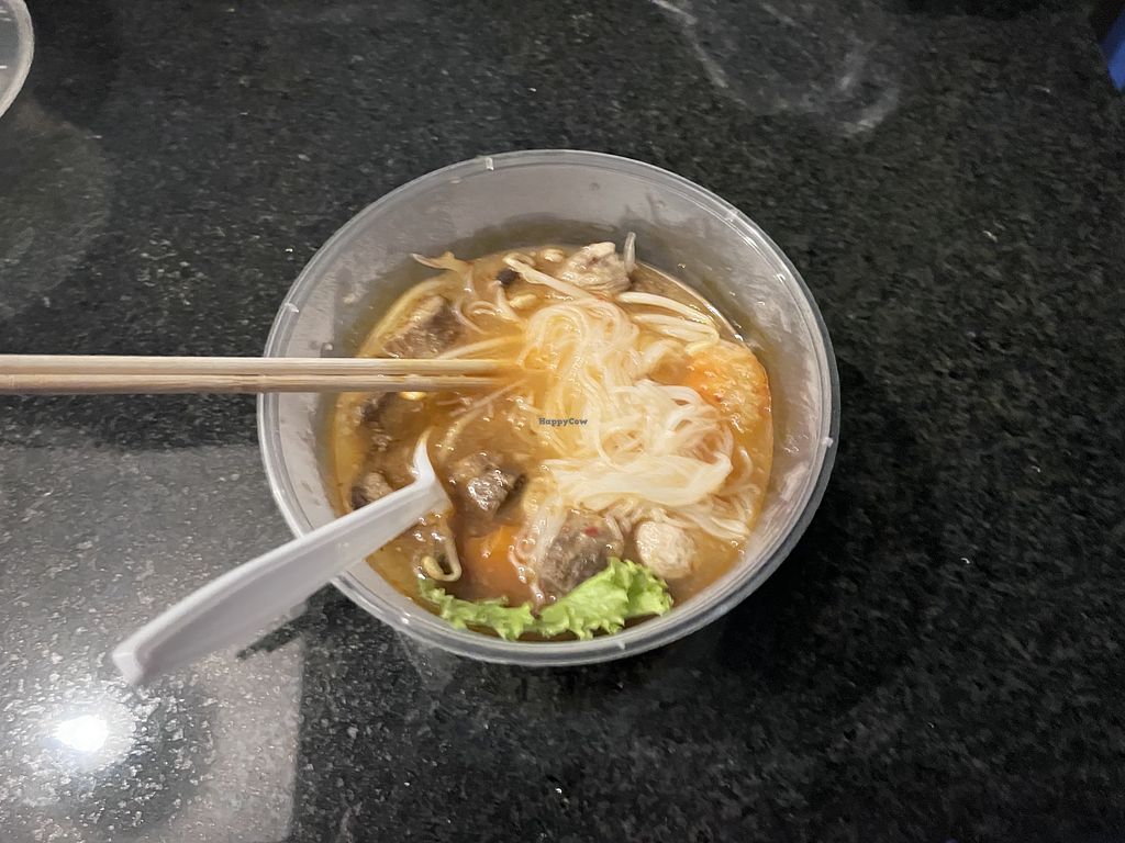 We had a wonderful breakfast at New Start Vegetarian Food and especially loved the Khmer pumpkin noodle soup - it was rich, comforting, and full of flavour, with perfectly cooked noodles and a lovely balance of spices. The pumpkin added a natural sweetness and creaminess that made the dish feel both nourishing and satisfying.