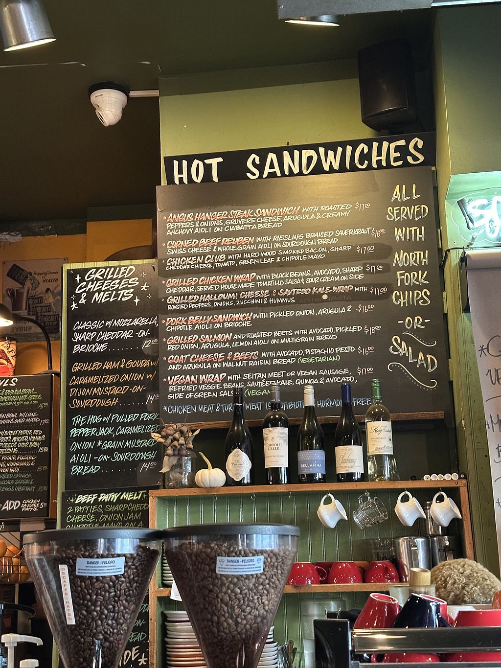 Serves meat, vegan options available. Coffee shop with a range of plant milks and several vegan items including a vegan grilled cheese & other vegan sandwiches. Open Mon-Fri 6:30am-6:00pm, Sat 7:00am-5:30pm, Sun 8:00am-5:00pm.