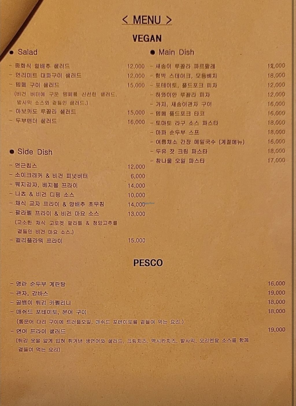 Serves meat, vegan options available. Bar and restaurant with vegan choices. Menu is clearly labeled and includes grilled salad, tofu salad, tomato ragu pasta, soy cream pasta, finger food and more. Vegan alcohol available. Open Tue-Thu 12:00pm-12:00am, Fri-Sun 3:00pm-1:00am. Closed Mon-Tue.
