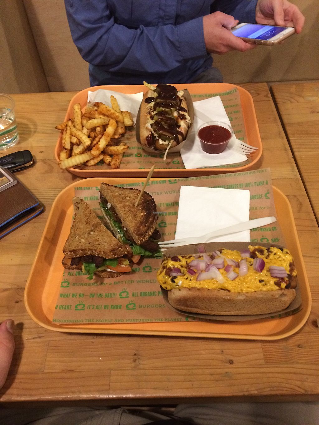 Wow! Where to begin?! This burger joint is 100% plant based and has so many options! We ended up going with the BBQ-bleu burger and the signature burgers (we did half “Swiss” and half “cheddar” and both were delicious) and I honestly could not tell you which was my favorite because they were both so tasty. I don’t like mushrooms usually but the mushroom-based patty was really yummy and didn’t bother me at all. The menu also included vegan sandwiches, hot dogs, a good kids’ menu, a large selection of shakes, and tater tots, sweet potato fries, or waffle fries. The fries could be either fried or baked and came with a fantastic “fry sauce”. Will definitely eat here again!