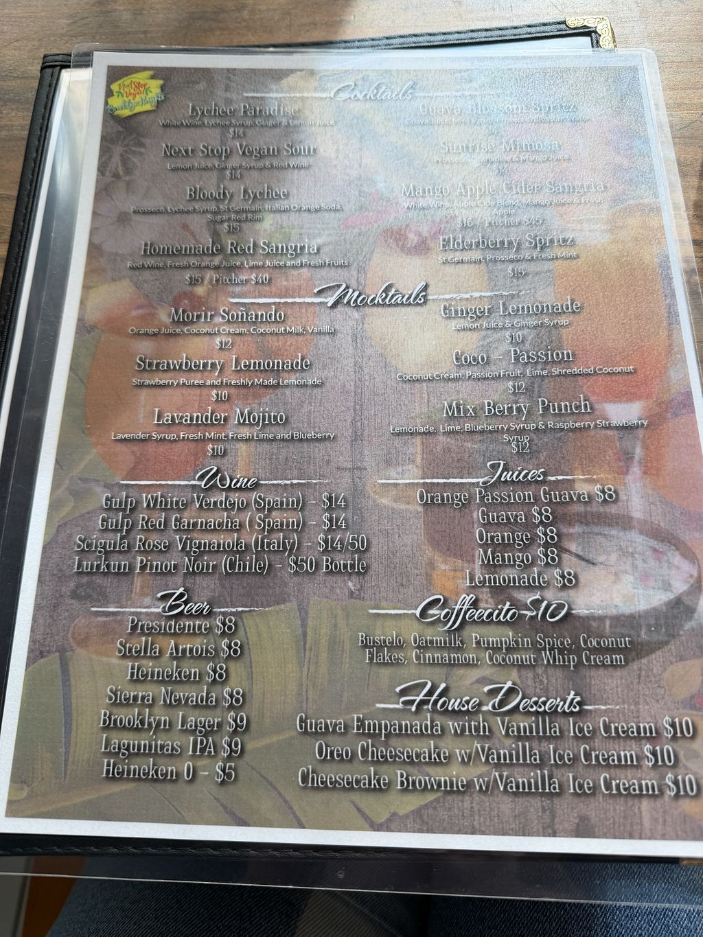 Drink menu
