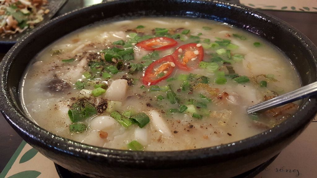 Chao Ngo (chao an kem gio) Combo: rice porridge (chao) with salad (gio…