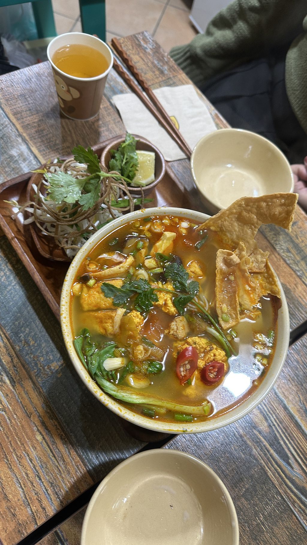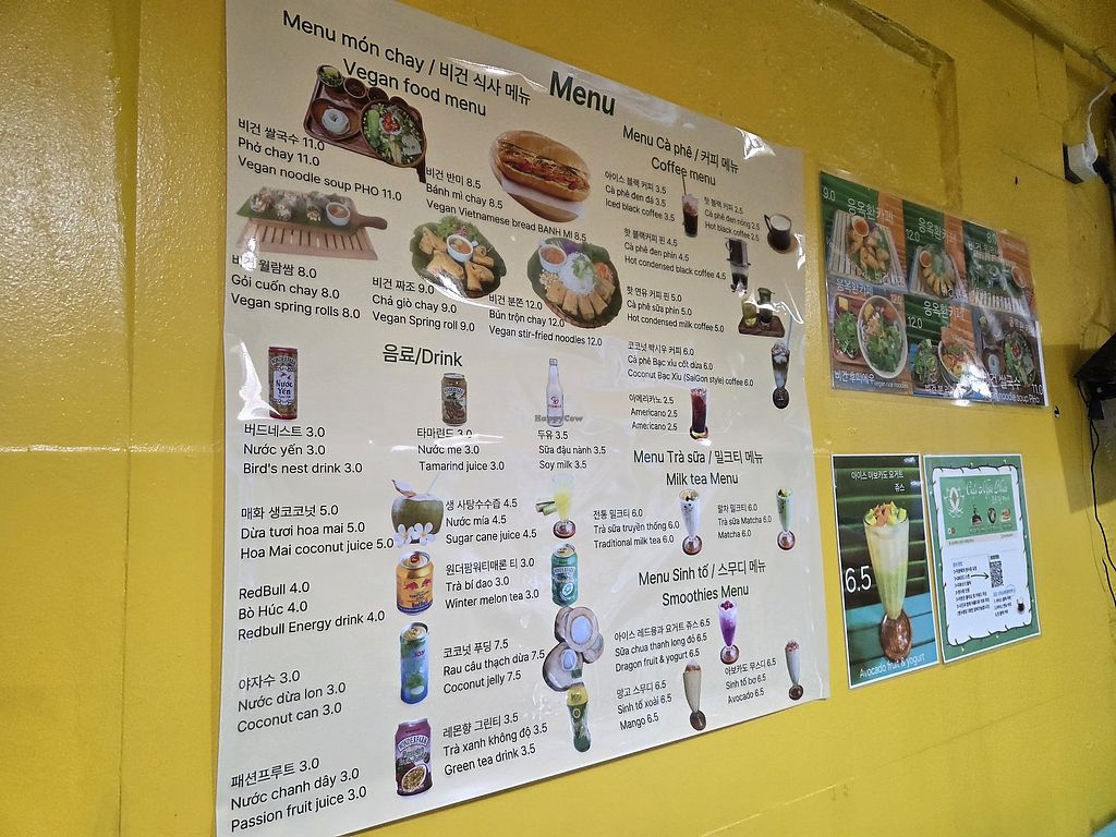It’s a tiny place in the middle of a neighborhood. It has a delicious fully-vegan menu. The owner is a Vietnamese woman who speaks Korean very well so we spoke Korean with her. She was super friendly and it was a delightful, flavorful, authentic Vietnamese meal. The Bún bò Huế and Banh Mi were both great!