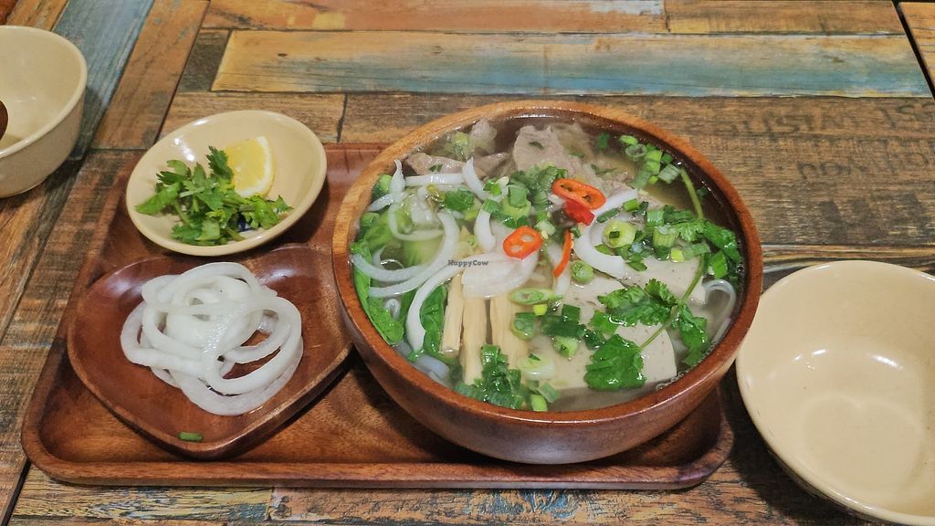 Fully vegan Vietnamese restaurant near Seoul station, serving traditional Vietnamese dishes including pho, soups, stews, sandwiches, and more, with an additional drink menu including coffee, tea, soft drinks, and smoothies. Open Mon-Sun 11:00am-9:00pm.