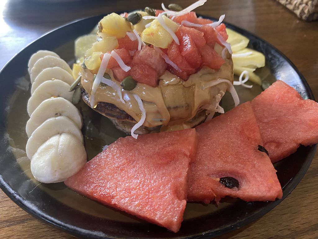 The banana pancakes are made of oat milk and no eggs😄they taste kind of healthy which is nice! I enjoyed them and asked for chocolate sauce instead of peanut butter.