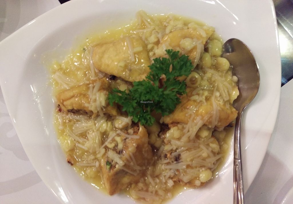 Tofu stuffed with mushroom and lotus seeds