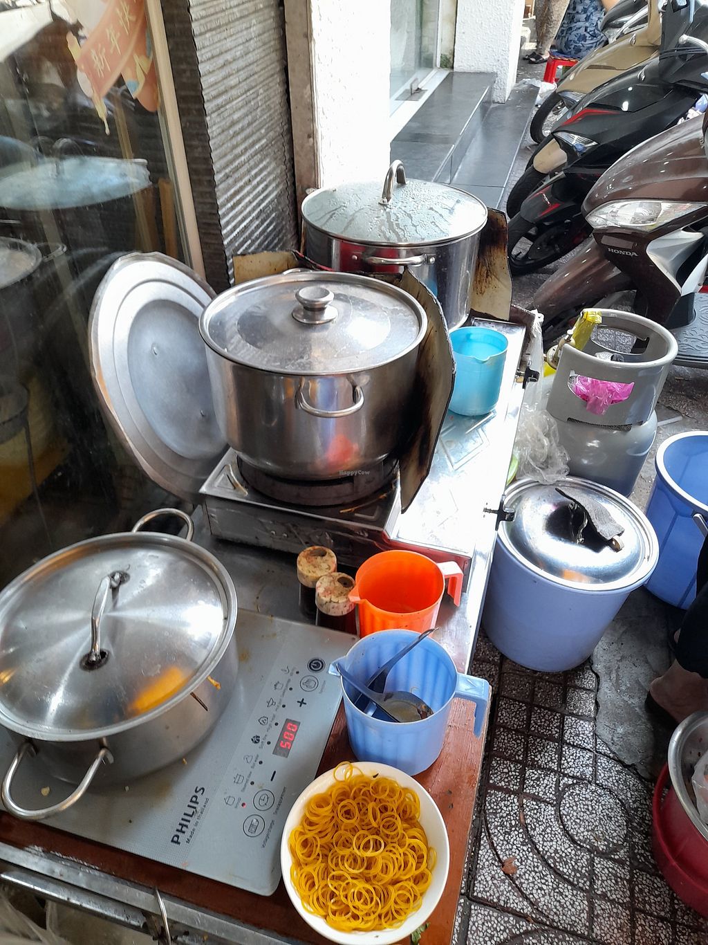 Fully vegan local Vietnamese restaurant serving traditional food. Has a dining area inside. Mostly take away food like bun mi xao chay and banh mi chay. Has a food stall out front. Various noodle and rice dishes. Menu is on the wall out front in Vietnamese only. Run by a friendly vegan Vietnamese couple. Fluent English is spoken. Payment by cash or bank transfer only. Open Mon-Sun 6:00am-4:00pm.