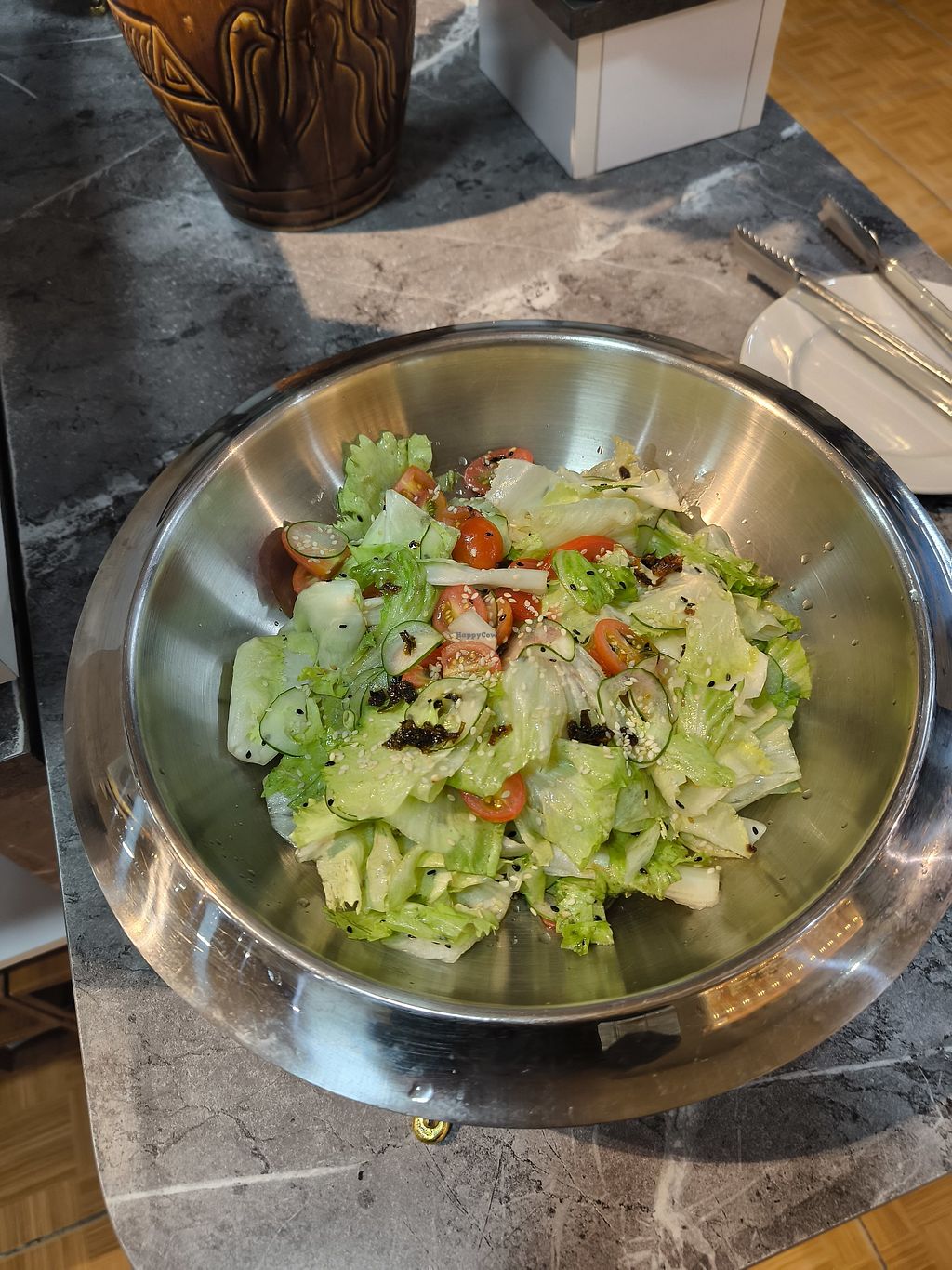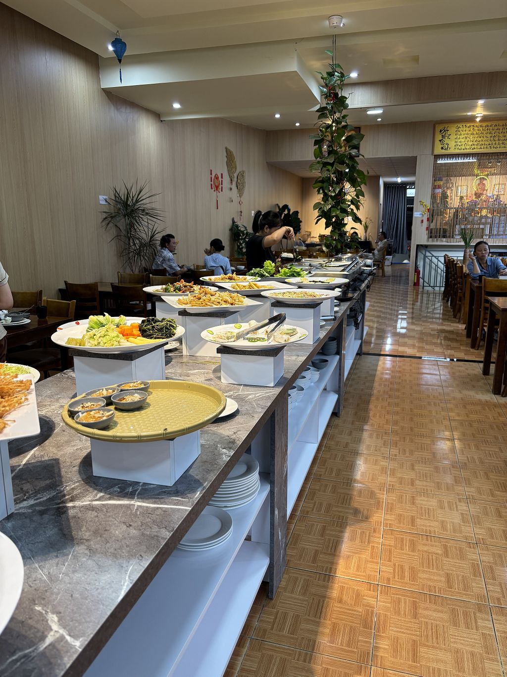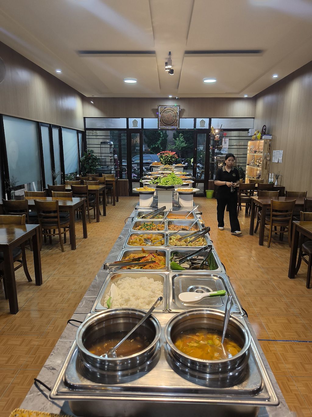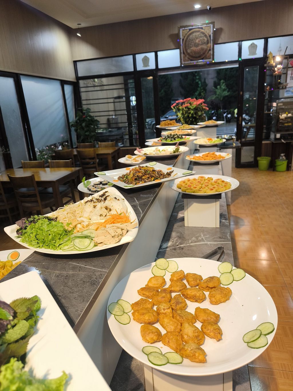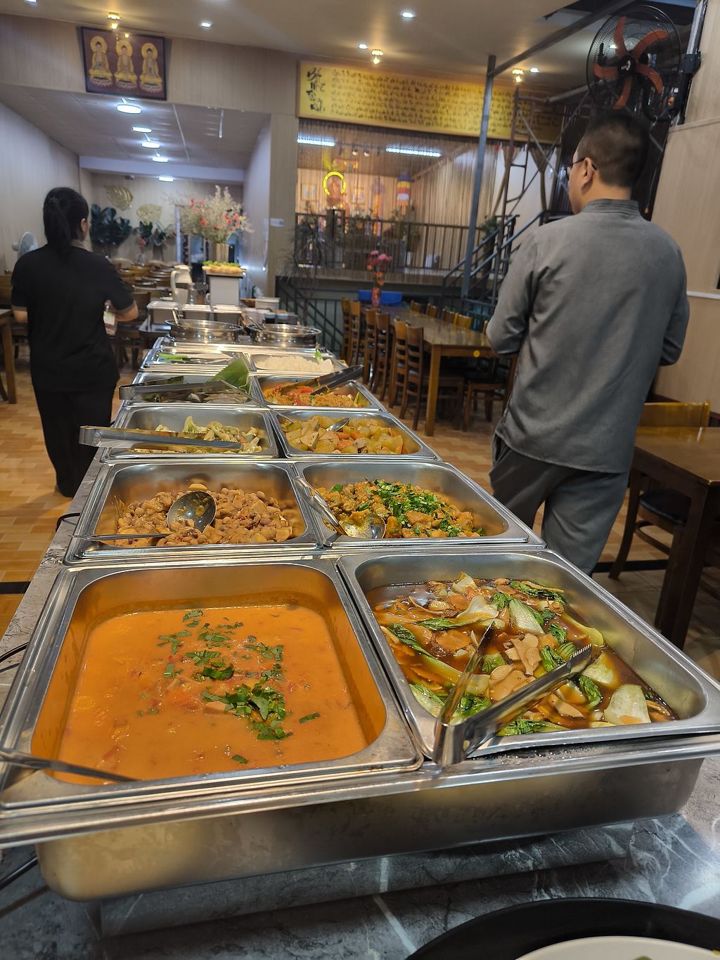 Front with the vegan buffet sign