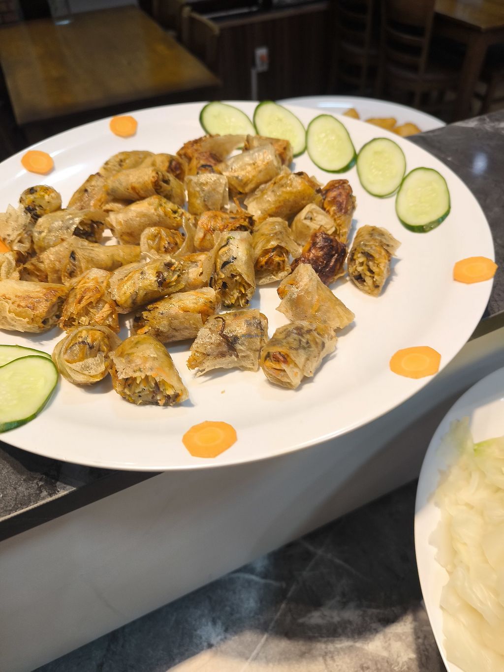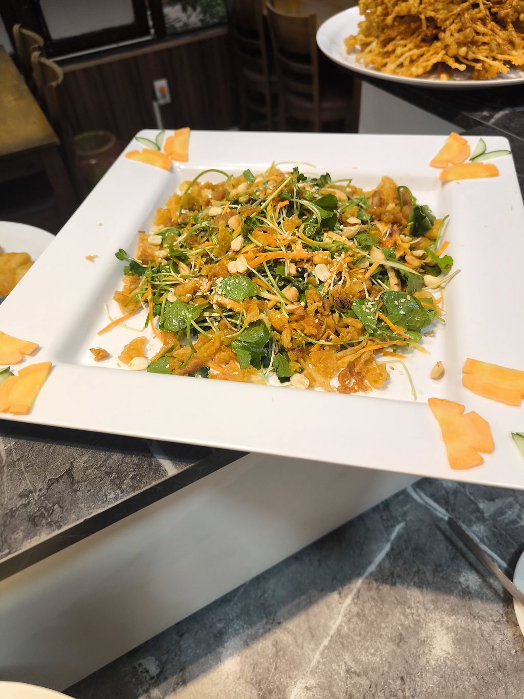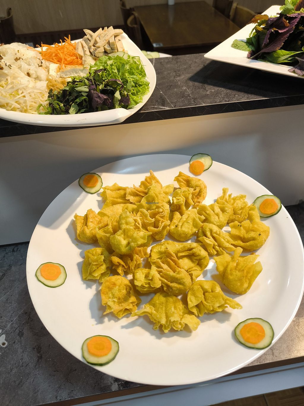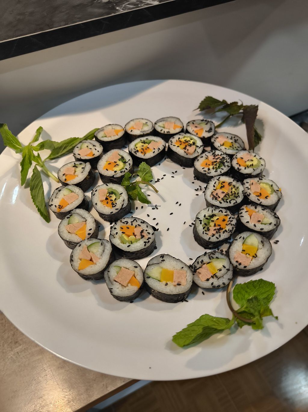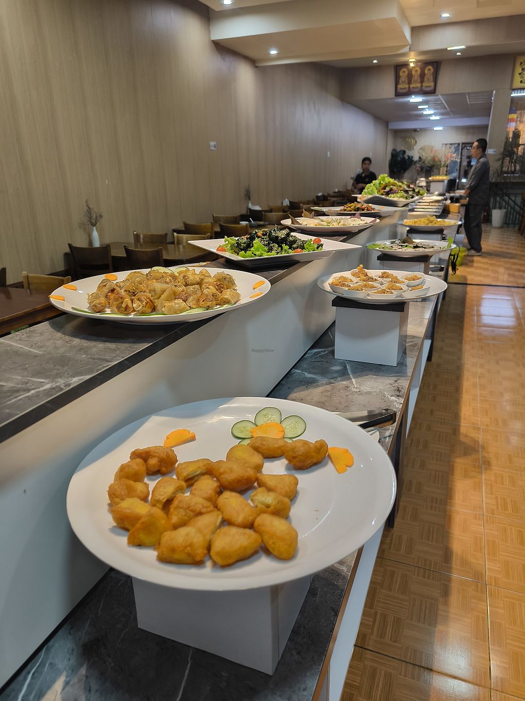 Fried mushurms, sushis, tofu, fake duck and a lot more