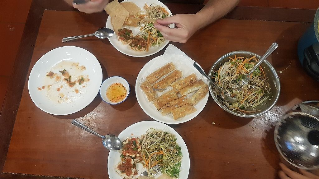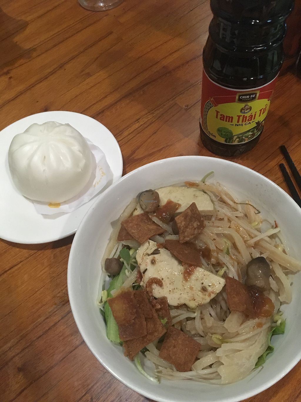fresh springrolls, dumpling soup, wontons, noodles with mock meat
