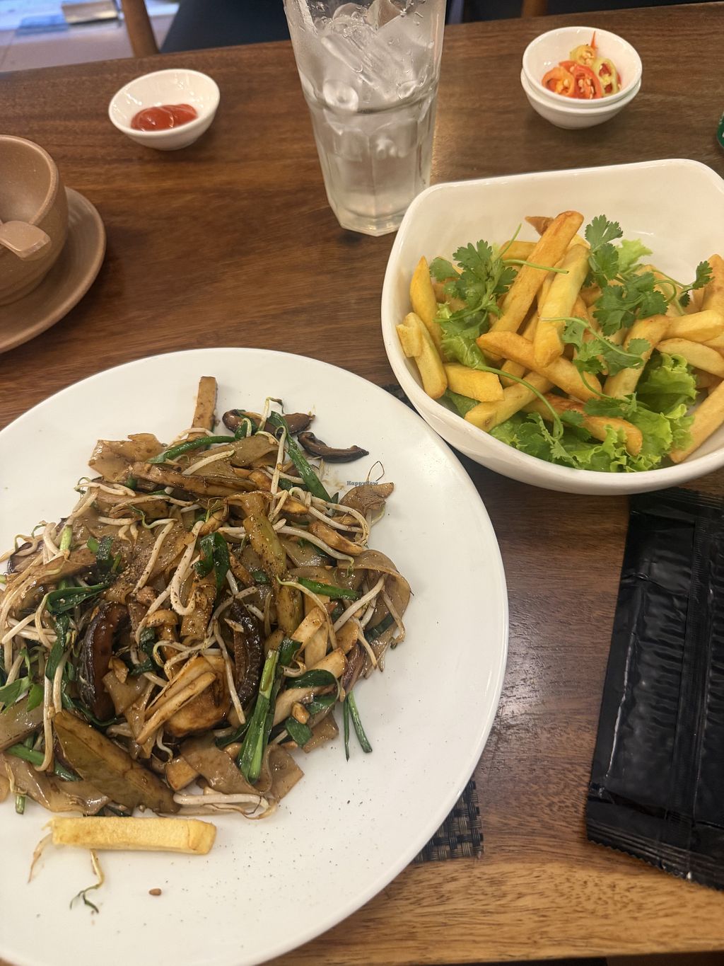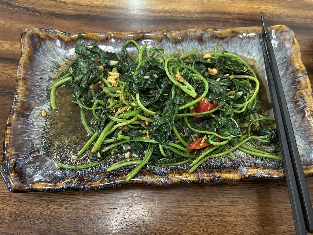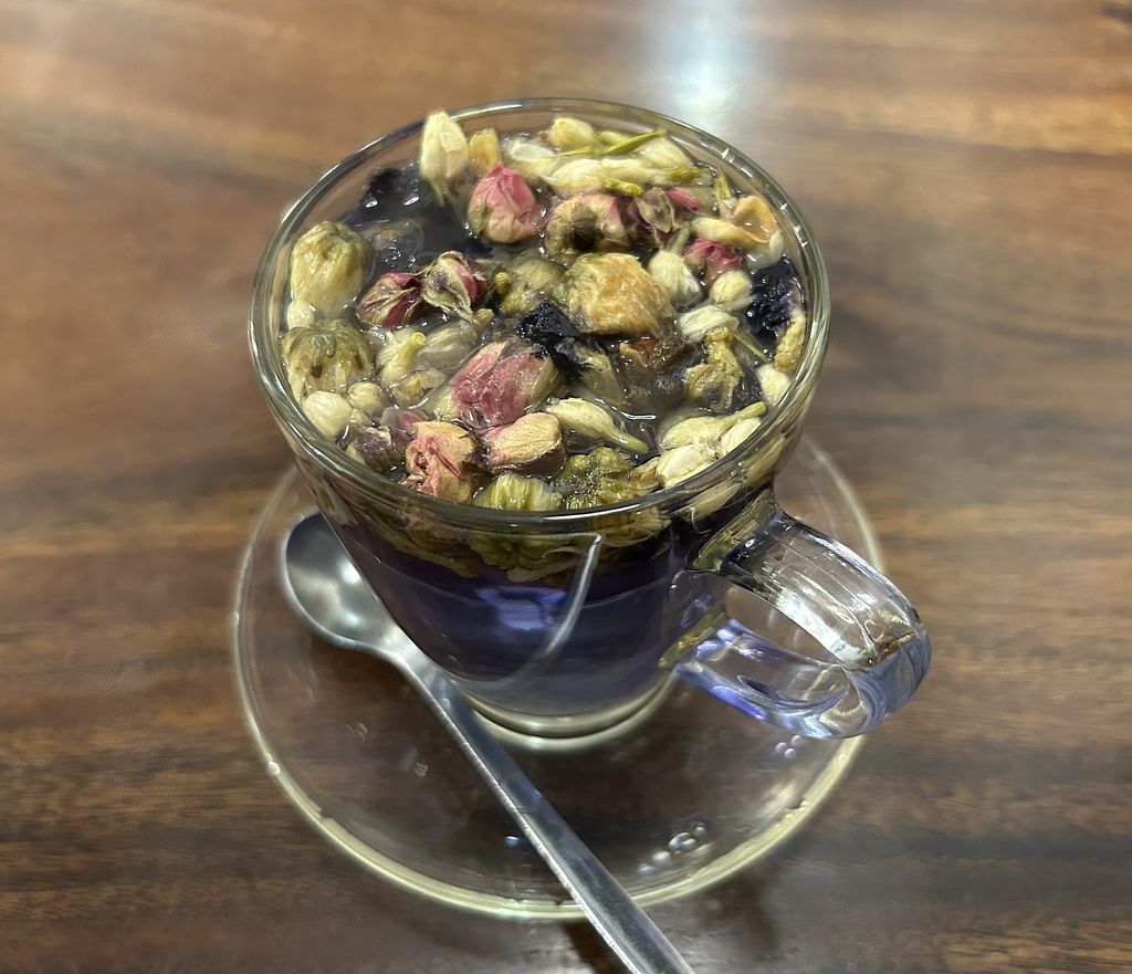 I’m so mad I didn’t try this place sooner. And that I wasted some meals on western food. The menu here - I felt so unsure of what to get there were many interesting options. I would’ve come back here more than once if I found it sooner. I got the vegan special noodle (like pho) and the sweet potato sprouts or something like that as well as floral tea. So pretty. I should’ve gotten the tea cold but I had a long day and just went with the waitress recommendation. I noticed most of the locals were eating the hot pot. The place was fairly busy.